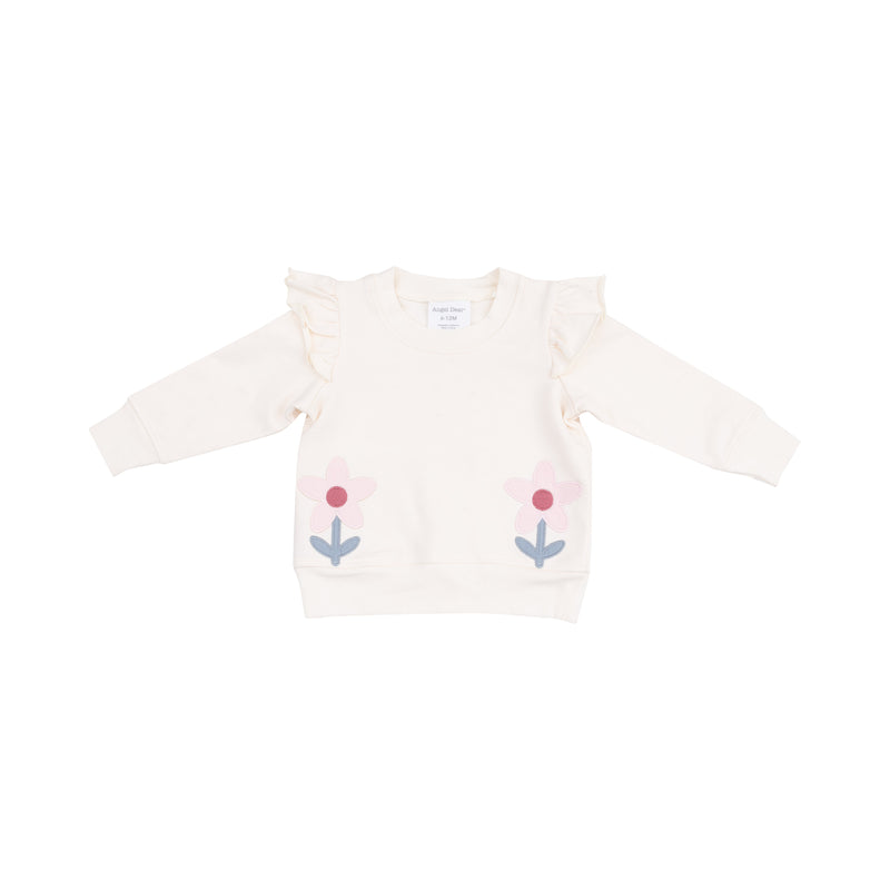 Add a touch of European flair to your little one’s wardrobe with our French Ruffle Shoulder Sweatshirt & Jogger Set! The sweet ruffle details on the shoulders add an extra dash of charm, while the cozy, soft sweatshirt and joggers keep your baby comfy all day long. Plus, the Danish Daisy patch adds an adorable pop of fun, bringing a little bit of nature into your baby’s playtime look!