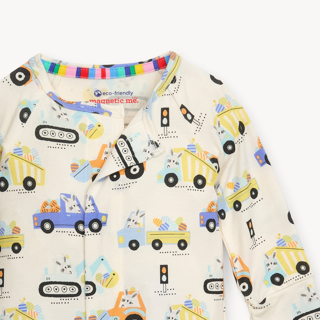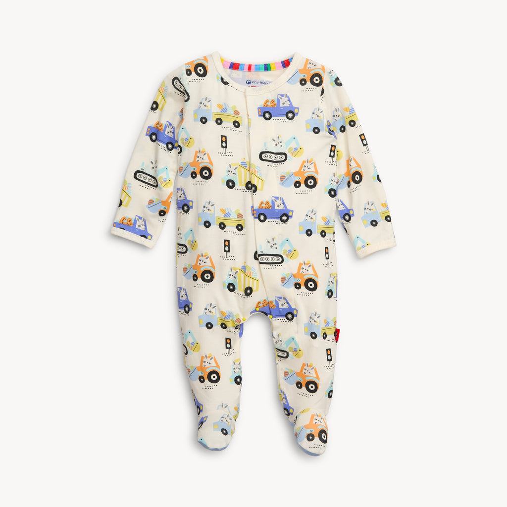 A soft, stylish all-day and all-night wardrobe staple with smart magnetic fasteners that makes changing time painless. With our no over-the-head design, simply open the outfit, insert baby, and BOOM, DONE! - the footie practically closes itself. Machine wash as directed.