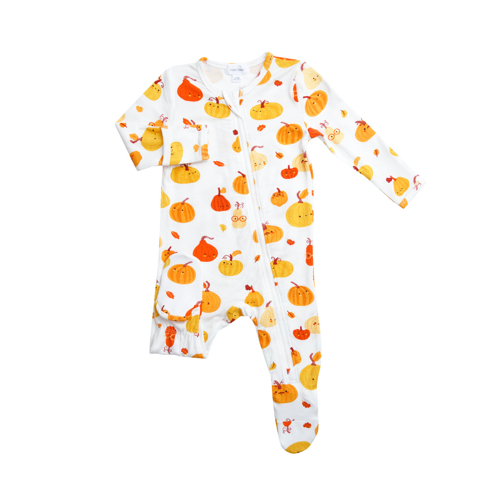 Our signature ruffle front zipper footie makes changing your baby a Snap! (or as we like to say a Zip!) Super soft bamboo fiber fabric and Angel Dear's signature prints will keep the oohs and aahs a- coming.